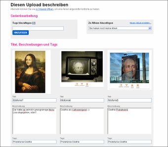 Die Flickr-Fotos und Videos organisiert man in mit Tags versehenen thematischen Alben. Auf Wunsch ordnet man den Bildern Orte auf einer Karte zu. Dabei erfasst und taggt Flickr auch alle Exif-Daten wie Kameramodell, Verschlusszeit, Objektiv oder Blend und vieles mehr. Dies erleichtert beispielsweise die Suche nach Vergleichsbilder für bestimmte Kameratypen.