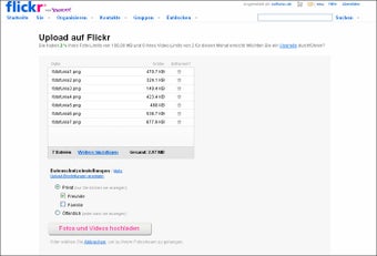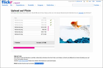 Flickr-Nutzer laden ihre Bilder über den Flickr Uploadr, über Plugins für verschiedene Programme, über die Webseite selbst, per E-Mail oder über Programme von Drittanbietern auf den Webdienst hoch. Der Partner-Dienst für die Bildbearbeitung Picnik korrigiert rote Augen, bietet einige Effekte und erledigt einfache Schnittfunktionen.